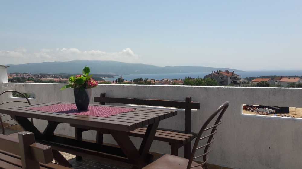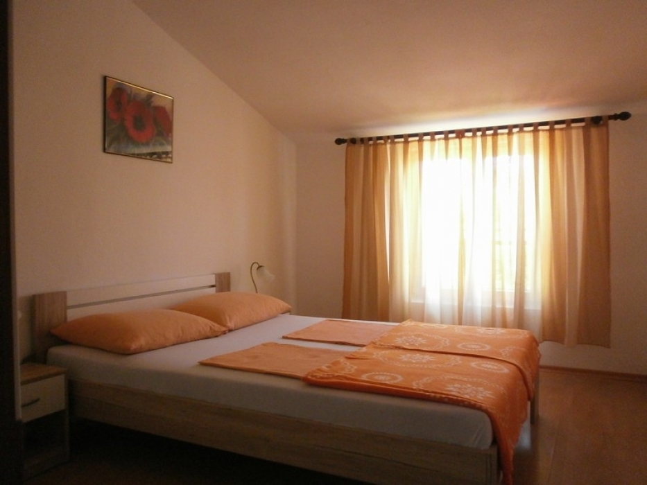 Apartment 6+2 is situated on the second floor, attic and it can accommodate 6 persons in 3 bedrooms. There is a possibility for situating up to 2 persons in the living room sofa bed of size 140cm x 190cm. Kitchen is equipped with an electric/gas stove, refrigerator, coffee machine, microwave, dishwasher and all necessary kitchenware. There are two bathrooms, one with a shower and one with a bathtub. From the bright living room there is a large outdoor terrace with a sea view equipped with garden furniture. Apartment has a separate entrance. A shared laundry room with washing machine at guests' disposal.