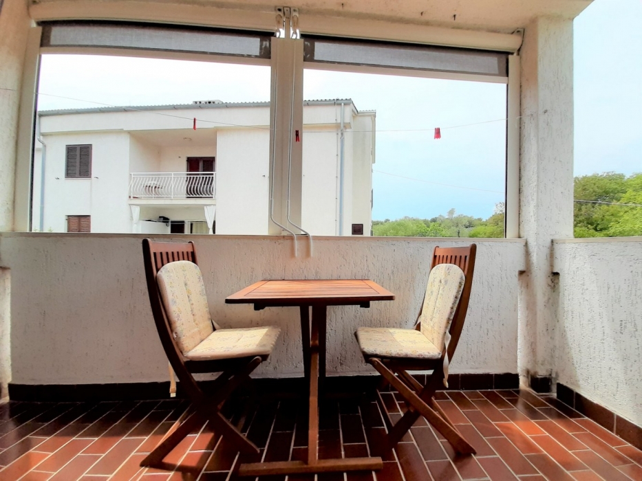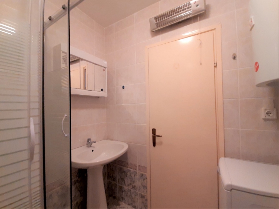 Apartment consists of a living room and one bedroom. The kitchen is equipped with an electric/gas stove, refrigerator, microwave and all necessary kitchenware. The bathroom consists of shower with cabin, sink and washing machine. The living room provides direct access to the furnished balcony equipped with table and chairs.