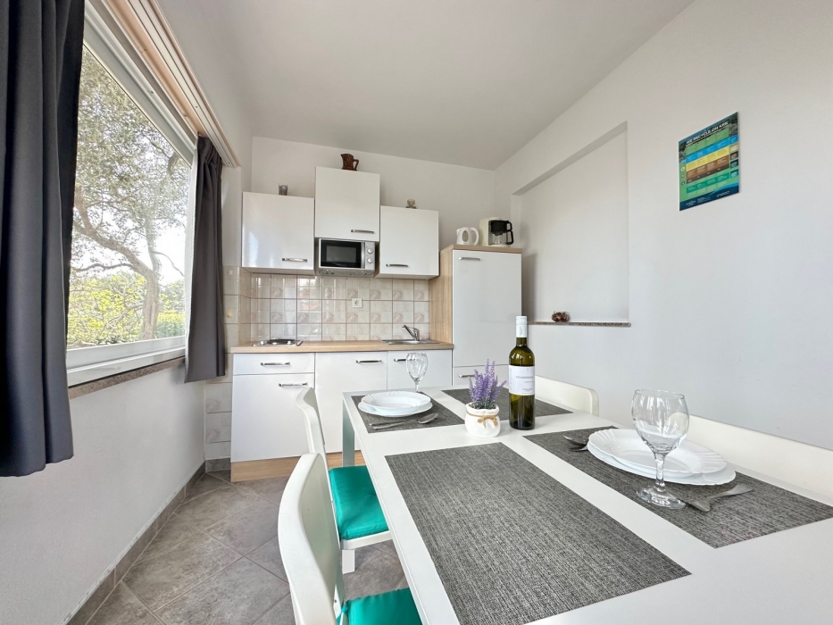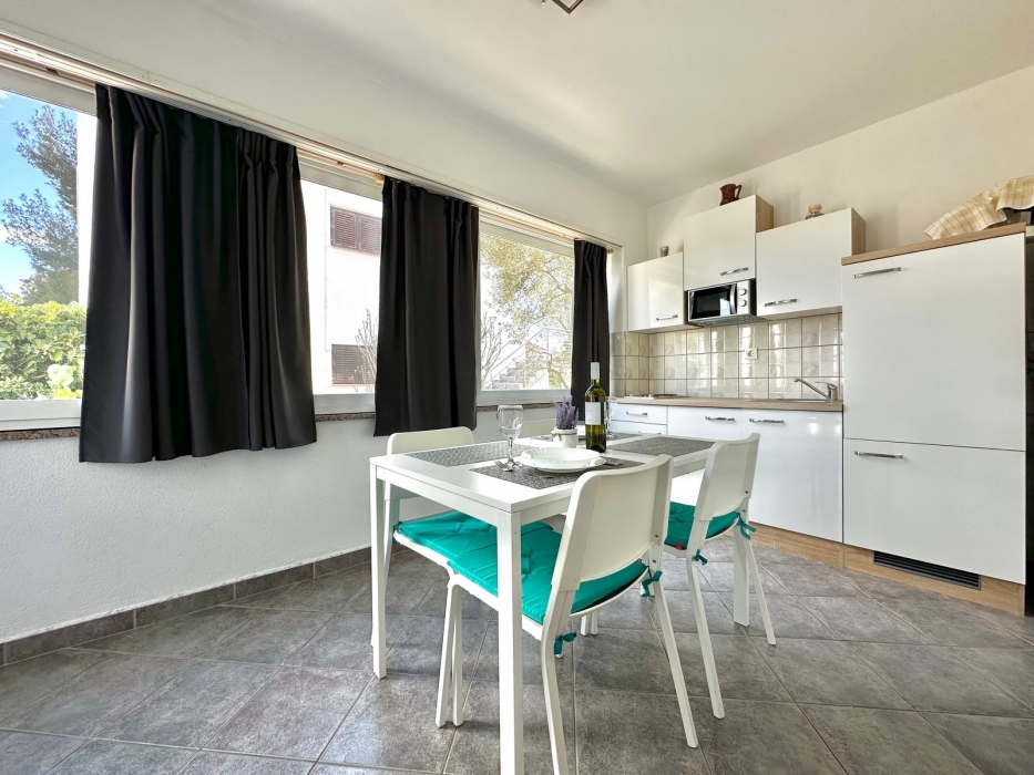 Apartment-studio nr. 1 consists of a bedroom with double bed (160cm x 200cm) and sofa bed of size 120 x 190cm. Kitchen is equipped with an electric cooker, refrigerator, coffee maker, toaster, kettle and all necessary kitchenware. The apartment has a lovely terrace equipped with garden garniture. Smoking is allowed only outside the apartment, on the terrace / balcony.