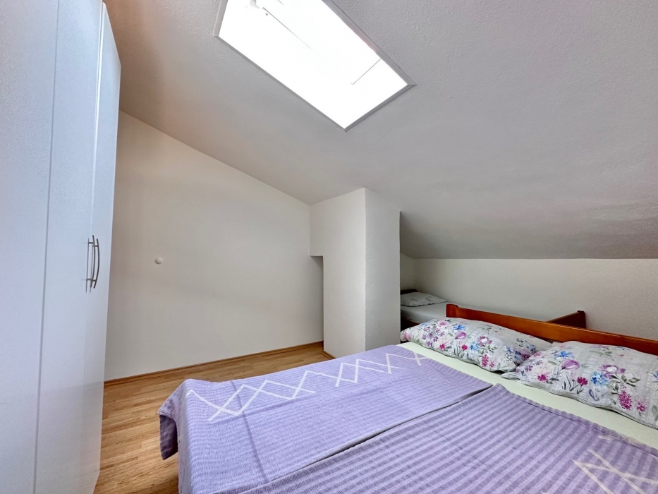 Apartment nr. 4 - mansarda is spread over the top floor of the house and it can accommodate up to 4 persons. There is one bedroom with a double bed and spacious living room with a double bed and sofa bed. The kitchen is fully equipped with all necessary kitchenware. There are two bathrooms with shower. The apartment has no balcony but receives lots of natural light through two large windows. Smoking is allowed only outside the apartment, on the terrace/balcony.