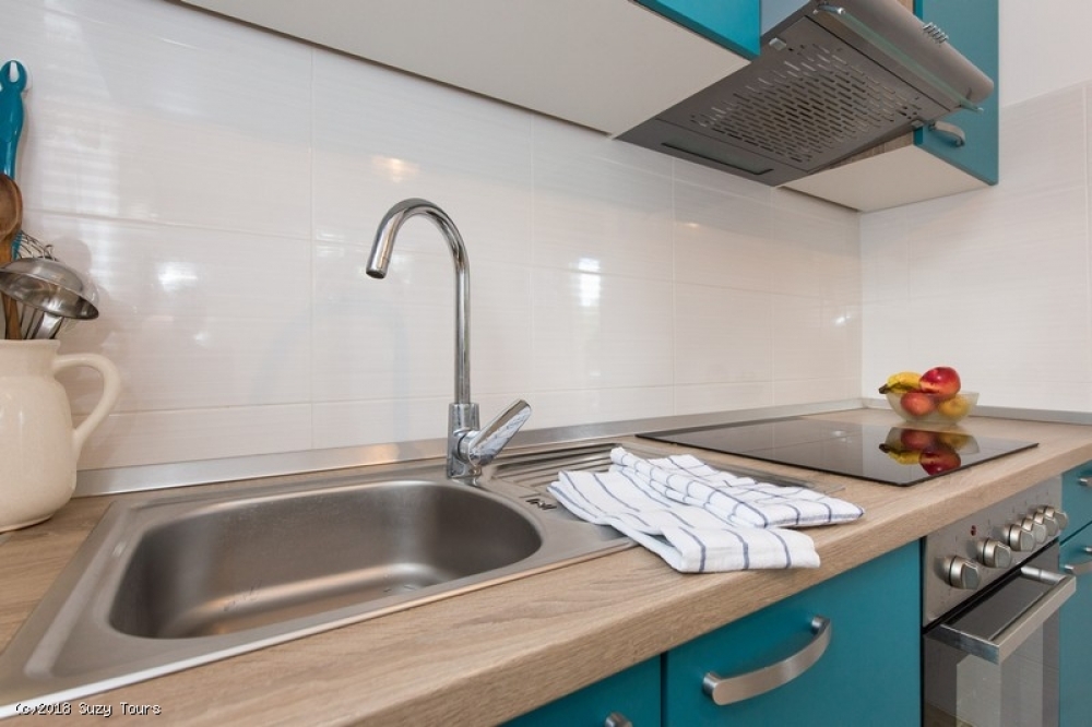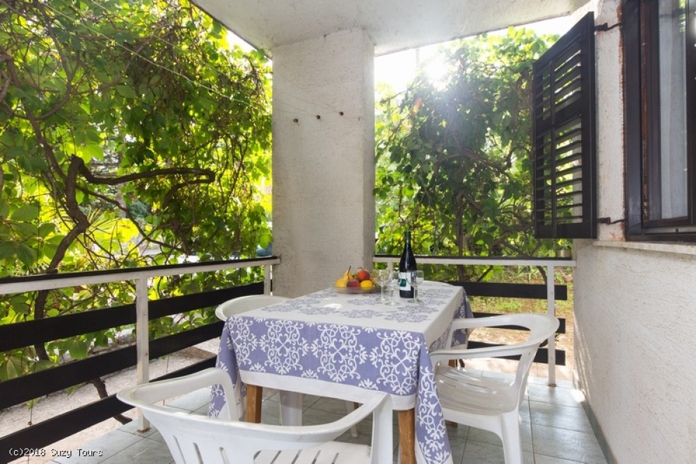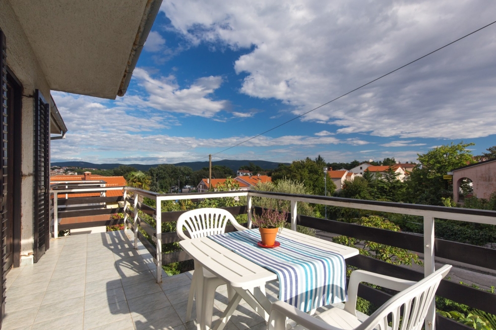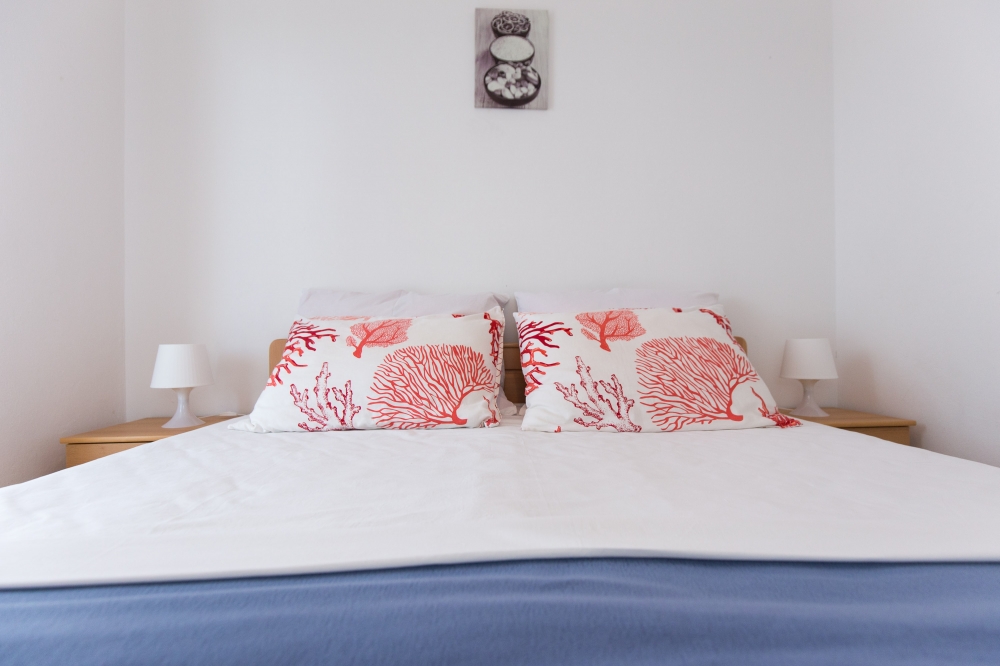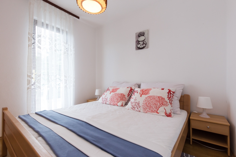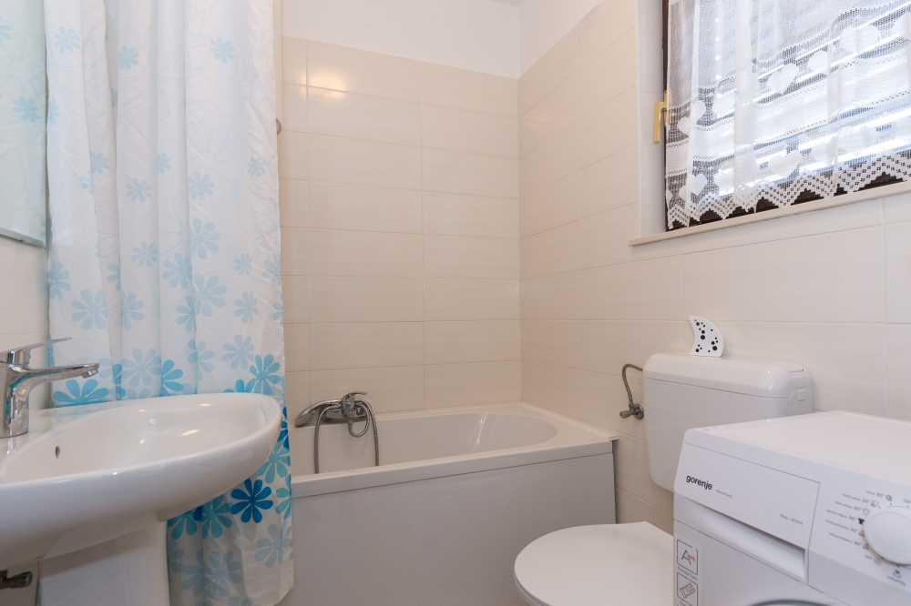 Holiday home 4+1 spreads over two levels and with a total area of 55 square meters, the apartment provides ideal accommodation for 4 persons. There is a possibility of accommodating one guest in the living room on a sofa bed that opens into a bed of size 140cm x 190cm. The kitchen is equipped with a fridge, freezer, coffee maker and all necessary kitchenware. Bathroom is completed with a standard appliance and includes a bathtub, sink and washing machine. The living room provides direct access to the furnished terrace, perfect for relaxing at sunset with a glass of wine. The higher level consists of two bedrooms, each with a direct access to the balcony. Apartment has a separate entrance. Smoking is allowed only outside the apartment, on the terrace/balcony.
