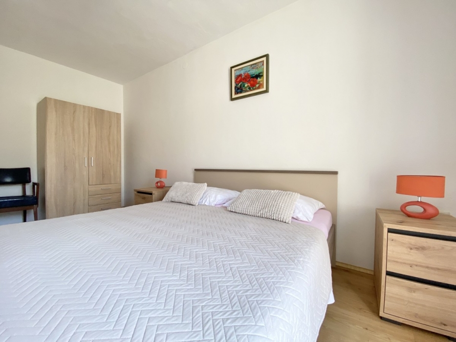 The Apartment is situated on the first floor and with a total area of 55 square metres can accommodate up to 4 persons. The apartment consists of a living room with a sitting area and two bedrooms with direct access to the balcony with a sea view. The kitchen is equipped with an electric stove, refrigerator, dishwasher, filter coffee machine and all the necessary kitchen appliances. The bathroom has a shower, sink and WC.