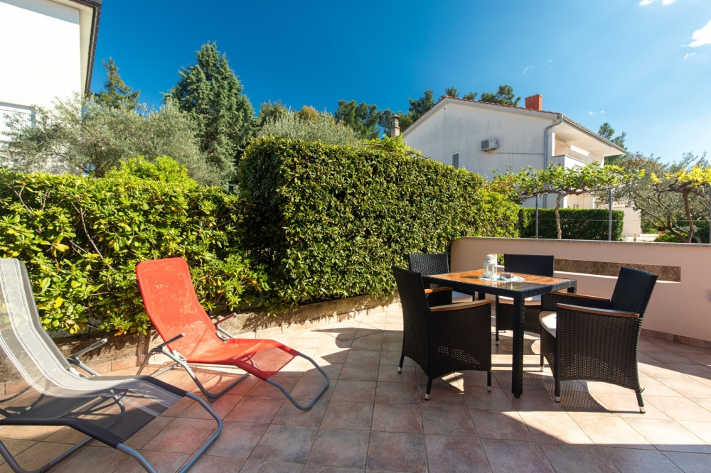 Apartment 2+1 is located on the first floor and with a total area of 45 square meters provides ideal accommodation for up to three persons. Apartment consists of a one bedroom, living room with kitchen, bathroom and an extra toilet. There is a large enclosed patio for your sole use, equipped with a table and chairs.