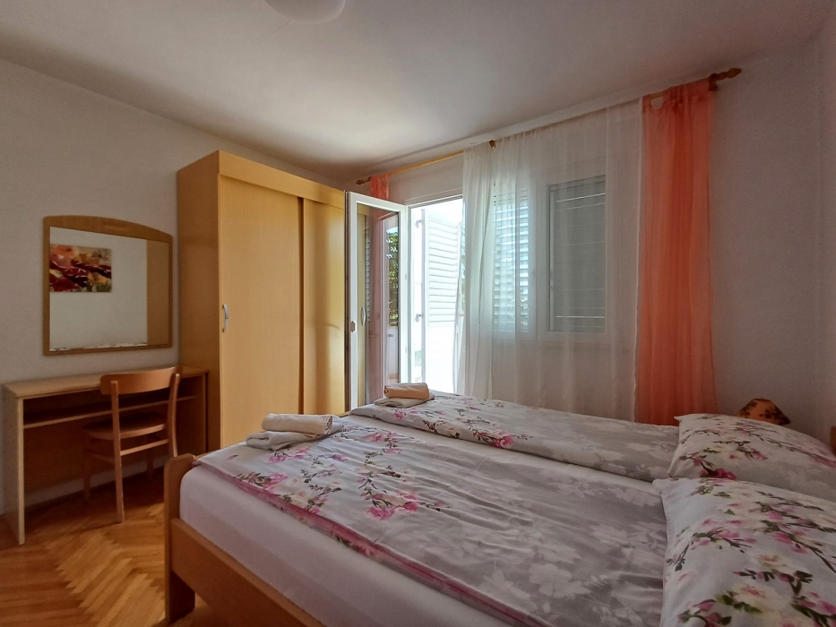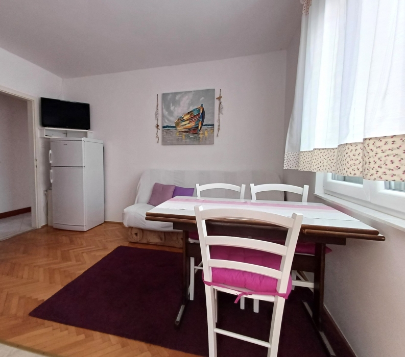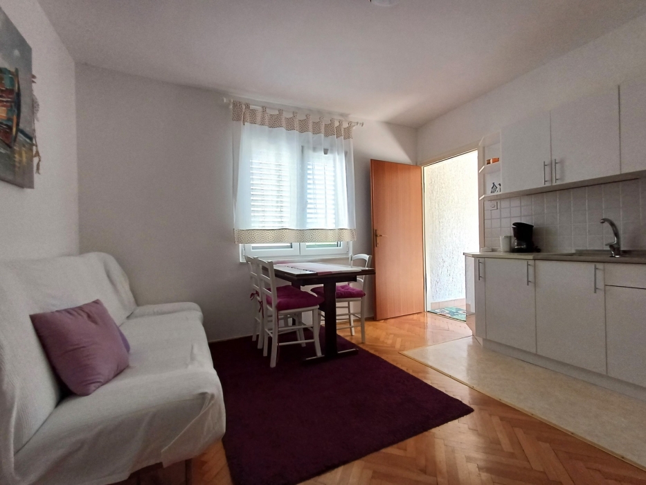 Apartment 2+1 is situated on the first floor and with a total area of 50 square meters, the apartment provides an ideal accommodation for up to 3 people. The apartment consists of a one room with double bed + single bed and kitchen with a sofa bed. The kitchen is equipped with an electric cooker, fridge, filter coffee maker, electric kettle and all necessary kitchenware. The bedroom provides access to the terrace with a lovely sea view.