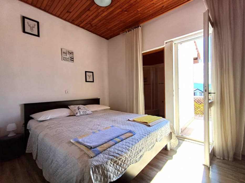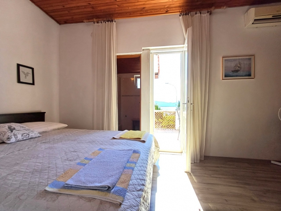 Room Almira nr. 1 is situated on the first floor and is designed for two guests. It includes a private bathroom with a shower and a balcony offering a beautiful sea view. The room is air-conditioned; however, please note that air conditioning is available at an additional charge of 6 eur per day.