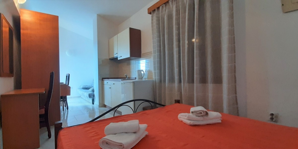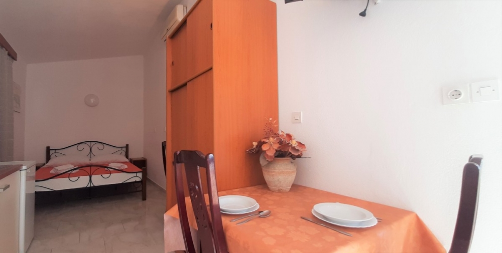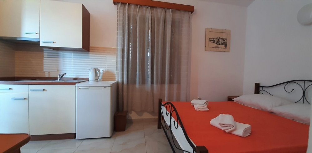 Located on the second floor, the studio is intended only for two guests, has its own bathroom with shower and fully equipped kitchen. The room is air conditioned to ensure comfortable and pleasant stay. From the lovely balcony you can enjoy a sea view. Smoking is allowed only outside the unit, on the terrace/balcony.