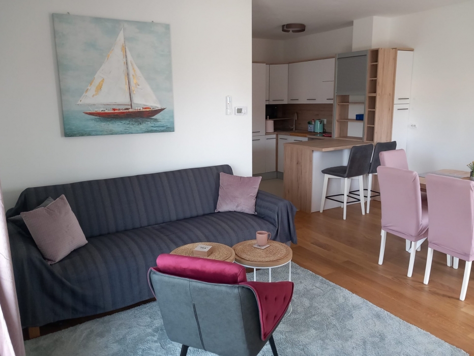 L'appartamento si trova al primo piano di un edificio residenziale in una zona tranquilla di Rijeka ed è ideale per un soggiorno confortevole fino a 4 persone. Ha una superficie di 70 m² e si compone di due camere da letto, entrambe con letti matrimoniali grandi, rendendolo perfetto per famiglie, coppie o amici.